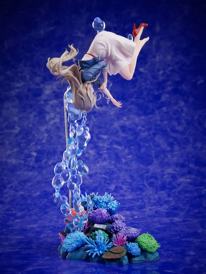 From F:NEX with sculpting by Moineau comes a stunning figure of Kukuru Misakino and Fuka Miyazawa from the anime series Aquatope of White Sand that recreates the series’ teaser visual! The 13.4” tall figure captures Kukuru and Fuka in an underwater scene as they experience the magic of the Gama Gama Aquarium. Both are recreated in intricate mid-air poses as they float on a stream of bubbles in the ocean, and each is painstakingly detailed, from their outfits to their expressions of longing and wonderment as they reach for each other. The intricate, colorful coral-like base completes the underwater atmosphere and adds a wonderful finishing touch to the ethereal scene.