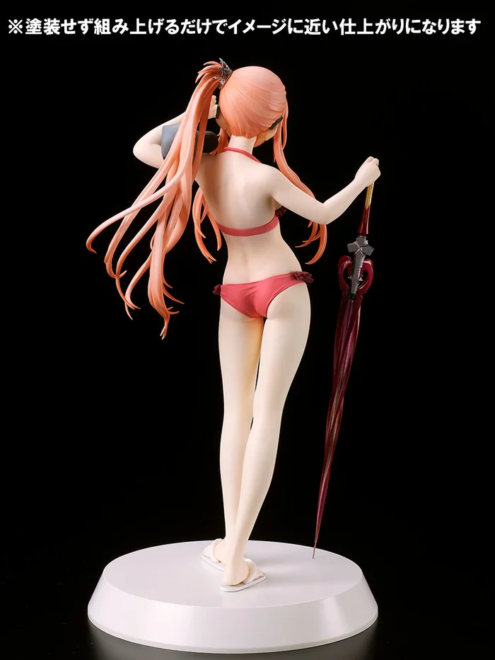 From Our Treasure with sculpting by Mederukin comes a 1/8 scale Assemble Heroines Summer Queens model kit of Saber-class Servant Medb from the popular game Fate/Grand Order! Measuring 7.7”, she is captured in her Stage 1 appearance from the game’s limited time event “Servant Summer Festival!” in a red bikini and flip-flops as she strikes a pose and gives a smile as warm as the summer sun. Highlights include the sculpting of her Noble Phantasm sword Fergus, My Good-Looking Brave, the cute lil penguin resting on her shoulder, and the frilly details on her bikini. Let her enchant you as part of your collection!