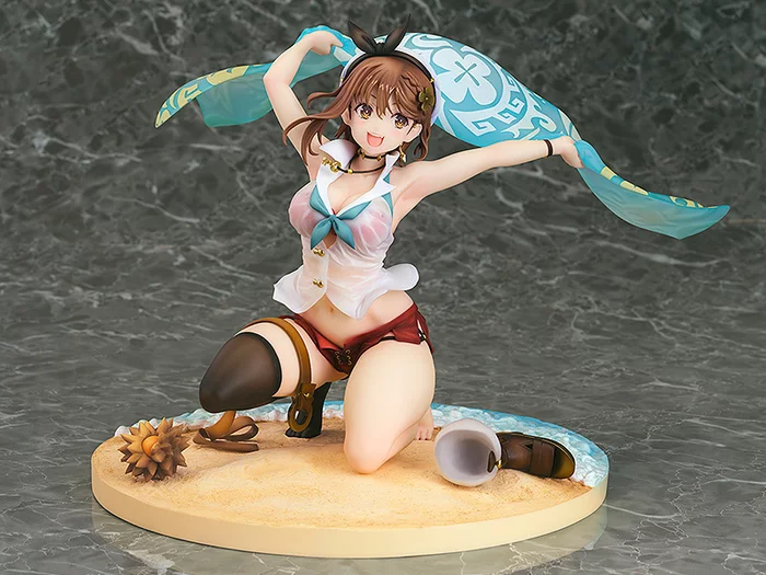 Ryza hits the beach!Our favorite thicc-thighed alchemist girl from the hit game Atelier Ryza 2: Lost Legends & the Secret Fairy Ryza is enjoying a day at the beach for this 1/7 scale figure from Phat! and sculptor Ain! Based on artwork by the game’s character designer Toridamono, Reisalin Stout (AKA Ryza!) measures 7.1" tall in a daring swimsuit outfit kneeling on the sand. She has kicked off her boots to enjoy the warm sand between her toesies and holds a towel overhead that flutters in the breeze as she gives us a smile that’s as bright as the summer sun.