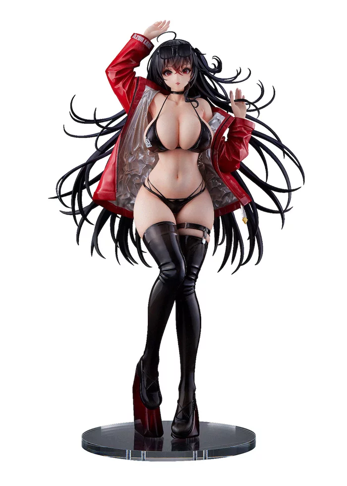 Sculptor Bouzu Rocket and Mimeyoi have turned our fantasies into reality with this new figure of Taihou from the Azur Lane series! Taihou's "-Enraptured Companion-" illustration has been reimagined in three dimensions. At 1/4 scale, this knockout figure stands at an incredible 17.7" tall! The beyond-busty Taihou is dolled up in tight black latex stockings with a matching string bikini top and bottom. On top of her bikini is a flashy red jacket with silver lining. Even the creases and folds of the lining have been faithfully sculpted into this piece! Her long, straight hair spreads out into dozens of points. With that hair, mesmerizing body proportions, and petit lips, Taihou is sure to stop your heart!
