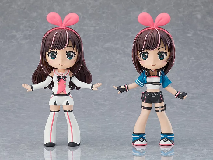 A double-dose of "Hai Domo!"From FineΦClover’s Yurumari series of soft vinyl figures with a soft style and feel comes popular VTuber Kizuna AI looking more moe than ever! Sculpted by Tokyo Unique, the set includes Kizuna AI in her classic outfit and in her A.I. Games outfit, each of which has been faithfully recreated in a stylized chibi form. The heads and legs of the figures can also be rotated to give a slightly different look. Add them to your collection!