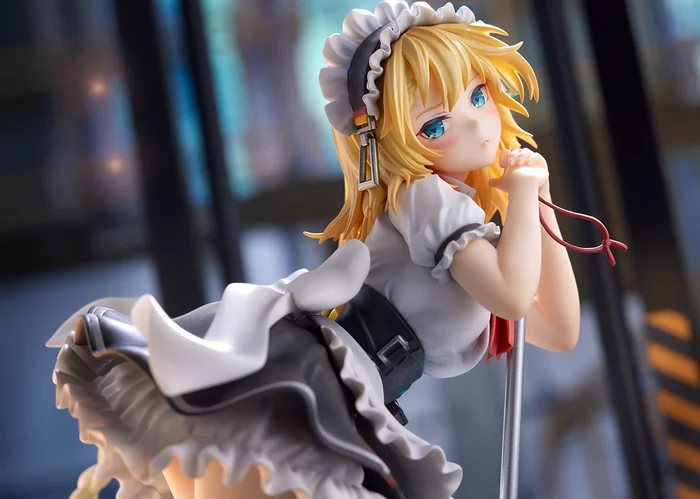 From the series Girls' Frontline comes a sweet new figure of Gr G36 in 1/7 scale! Sculpted by Jonji, Gr G36 has kicked her traditional outfit to the curb for some spicy maid attire! Her top is white, complemented by a black corset and skirt. But she is rocking a pair of tough-looking boots, a contrast that works well for the blonde beauty! The blue-eyed bishoujo rests her head on the handle of her mop. She doesn't look too thrilled to be cleaning up a mess, but then again, when does she?!