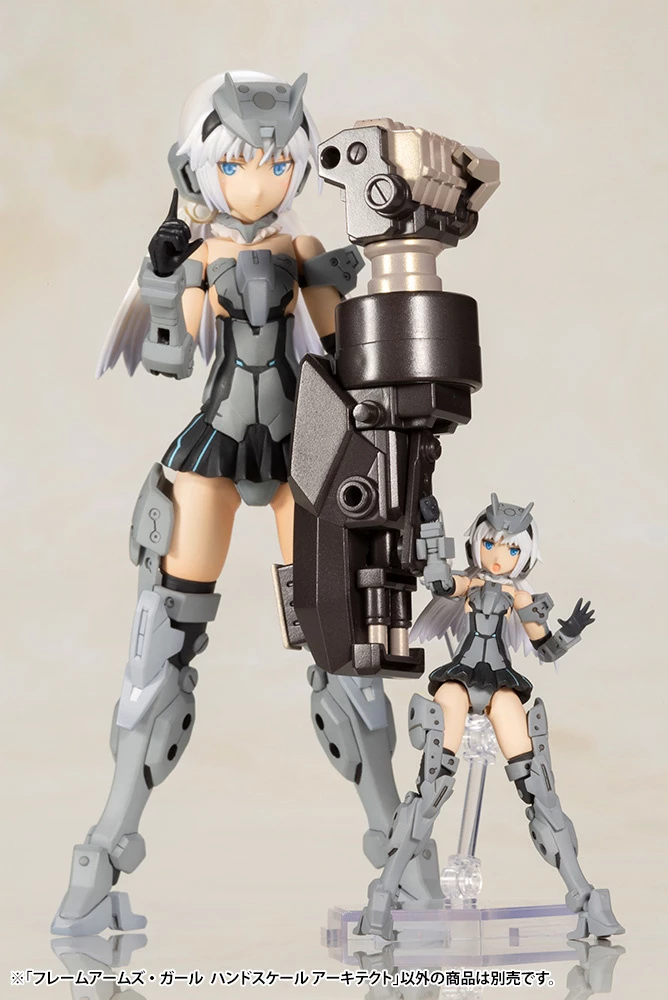 A palm-sized princess of pain!From Kotobukiya’s palm-sized Frame Arms Girl Hand Scale series of small plastic models with unparalleled sculpting and movement comes an Architect figure based on artwork by Fumikane Shimada! The 3” figure is fully articulated with 20 points of articulation, features color-molded parts and pre-painted face parts so it can be assembled without any additional painting, and comes equipped with two Impact Knuckles. As with all kits in the Frame Arms Girl series, it features 3mm joints compatible with the M.S.G. accessory series, the Frame Arms series, and the Hexa Gear series, so your customization options are limitless!
