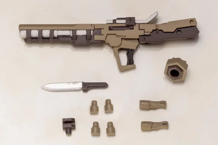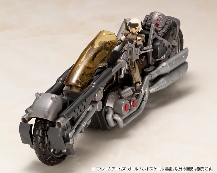 Frame Arms Girl enters the miniature battlefield with this “Hand Scale” version of the classic Gourai. The non-scale plastic model kit comes with a bazooka, knife, spare parts for arms, three interchangeable hands, and decals. Gourai also comes with 2mm to 3mm conversion parts and an optional 3mm back connector.