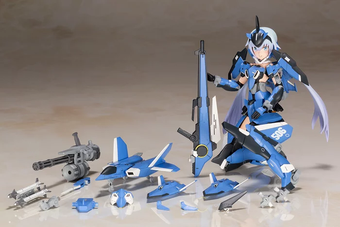 Stylet gets an upgrade! Frame Arms Girl Stylet XF-3 comes with her smartgun, missile, and gatling gun as well as three new painted faces (neutral looking left, crying, and smug with a closed eye) as well as five interchangeable hands. As a Frame Arms Girl, Stylet XF-3 also features the common 3mm joints and is compatible across Kotobukiya’s range of plastic model kits and accessories.