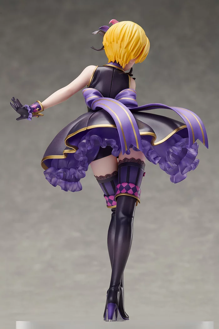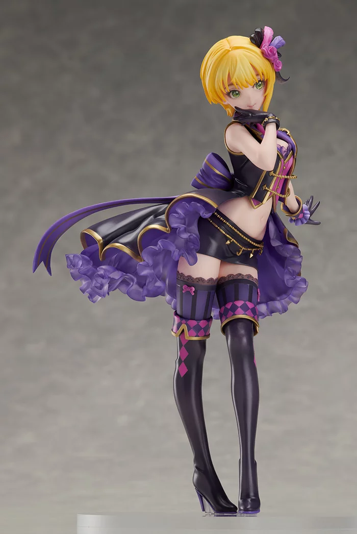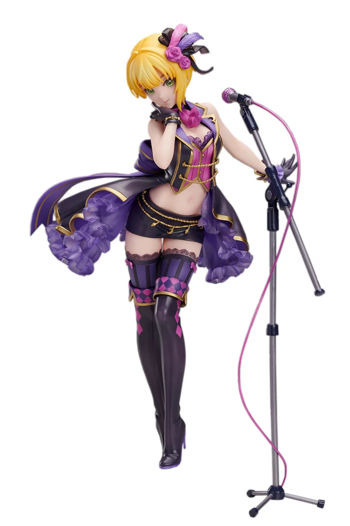The dark and lavish outfit with gold accents she’s wearing is “Fragrance of Night,” her stage outfit from their song “Tulip,” which was sculpted to perfection by Chikai to deliver Frederica’s incredible stage presence. She also comes with a mike stand, so she can hold a personal performance for you any time you want~