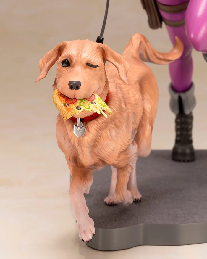Kate has a bit of a surprised and perplexed look on her face. And why wouldn't she? Her faithful one-eyed companion, Lucky AKA Pizza Dog is taking her for a walk rather than the other way around! Lucky has a playful bounce in his trot, and of course, a cheesy slice in his mouth!