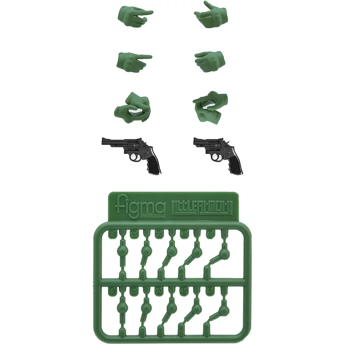 Now you can equip your figma figures for combat with this set of hands from TOMYTEC's Little Armory series! Your figma figures will have a tactical edge with this set that allows them to hold handguns, rifles, and P90-type weapons from the Little Armory series. Included are a combined left and right hand perfect for holding a handgun with both hands and hand parts for displaying your figures holding guns with angled grips, making it easy to equip your figures with a wide range of weapons. Also included is a runner kit for creating two magnum revolvers!