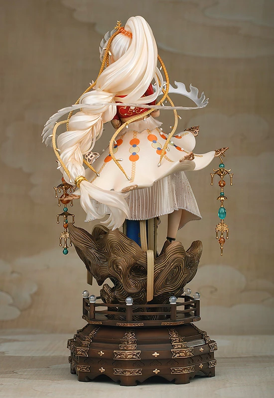 Instead of the original pillar’s crystal ball, the figure features a beautiful smiling girl adorned in an elegant dress with a pearlescent finish. Every detail of the figure looks stunning and immaculately sculpted, from the small gourd in her hand to the elaborate hanging decorations and intricate patterns of the tower. With so much delicate beauty to appreciate, don’t miss out on adding this stunning figure to your collection!
