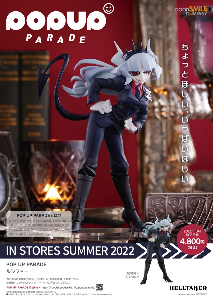 The CEO of Hell ascends to the Pop Up Parade line!From Good Smile Company and sculptor Nakayaman comes an easy-to-collect and fun-to-display Pop Up Parade figure of Lucifer from the popular puzzle game Helltaker! Measuring 6.7" tall, she’s captured swinging her hips to the side in a pose based on her memorable dancing scene. Don’t miss out on adding her to your collection, just be sure to offer her pancakes to get on her good side!