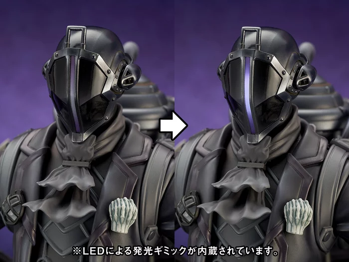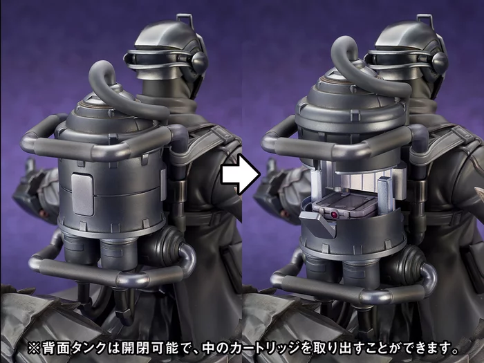 Careful sculpting recreates his signature black outfit in impressive detail down to the different textures being conveyed, and his large tail and the tank on his back provide an interesting contrast. Speaking of his tank, it can be opened and closed and even features a certain removable cartridge inside. And thanks to internal LEDs, the slit in his mask can also light up! Don’t miss out on adding him to your collection!